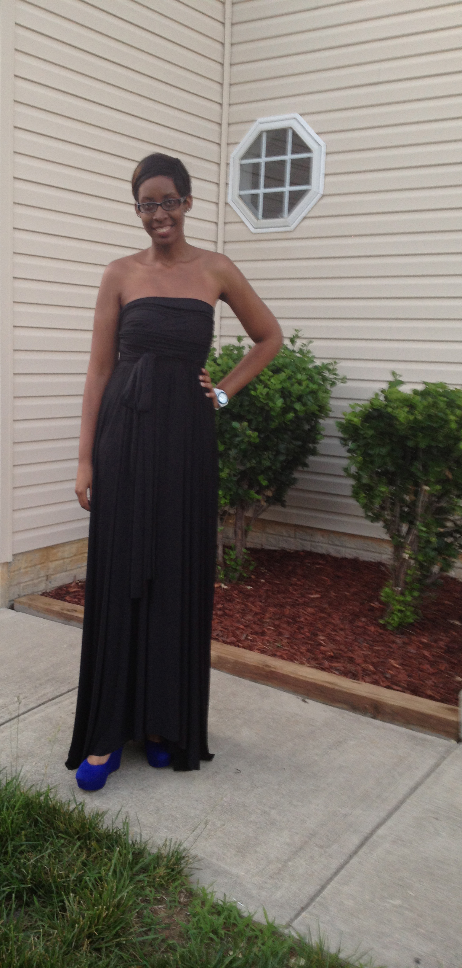 Helen also had me try on the Infinity Maxi Dress in Black. (I saw that they also have the dress in a new tribal print which is gorgeous!) I just had to try on my 5 inch Lunar wedges with the dress and it still touches the ground. Amazing!