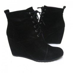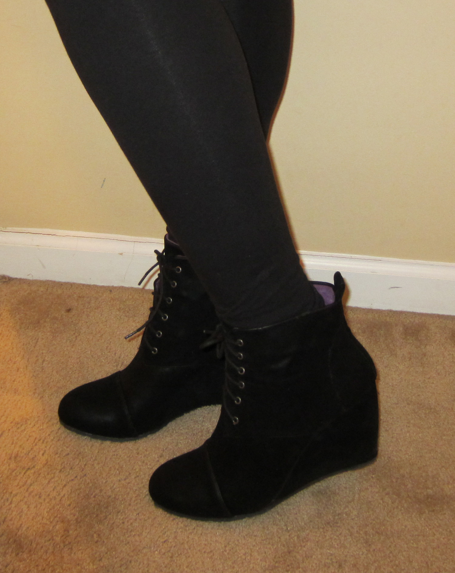 The shoes I ordered were the Blowfish ‘India’ wedge bootie in Black. They were featured in my Fall Must Haves: Shoes post I did a while back. Simply put, they are a fabulous pair of shoes. As Barefoot Tess put it on Twitter: they are “the perfect combo of laid-back casual & feminine glam”. I could not have said it better. India is a lace-up wedge bootie that looks like a work boot but much, much cuter with a little Victorian edge thrown in for good measure. It comes in 2 colors: Black and Earth in sizes 11-14.