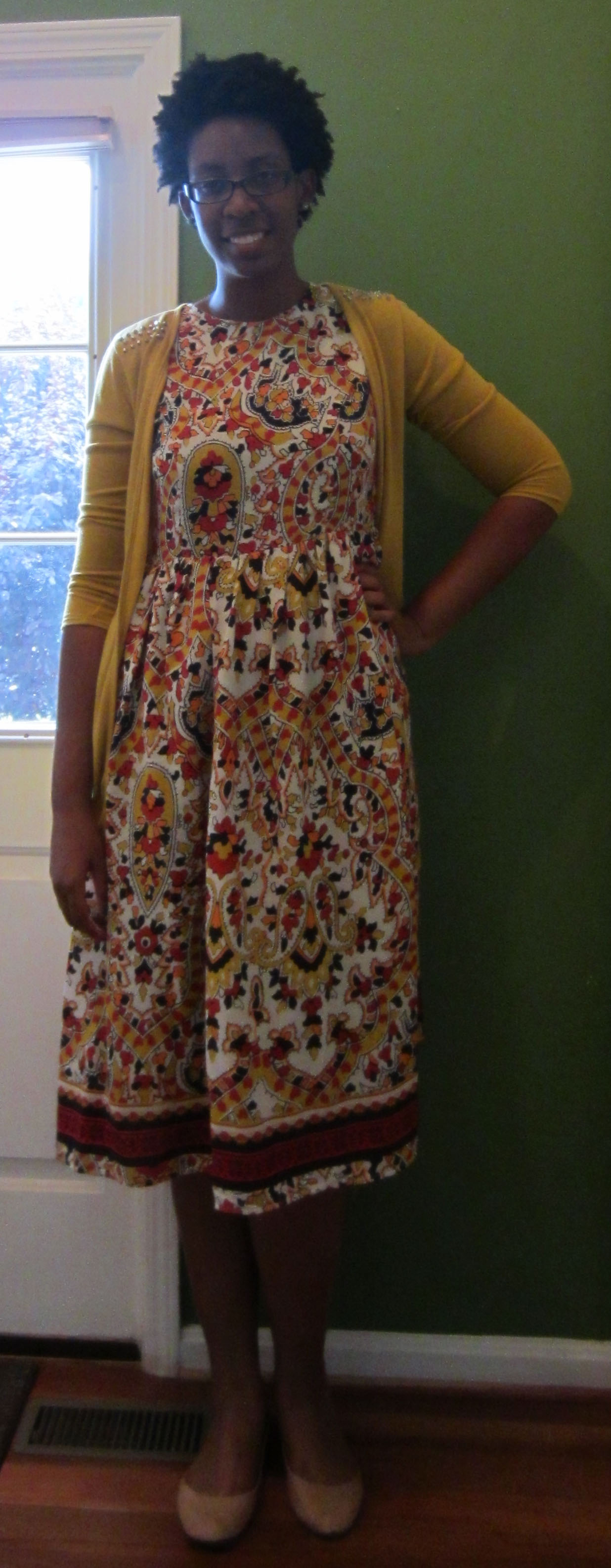 I wore it to work last week with my mustard studded cardigan from Modcloth and my Cognac flats. I got a ton of compliments from my coworkers when I wore this. Someone even said that I always looks so cute. That made me smile. Just because I am tall, doesn’t mean I can’t look good.