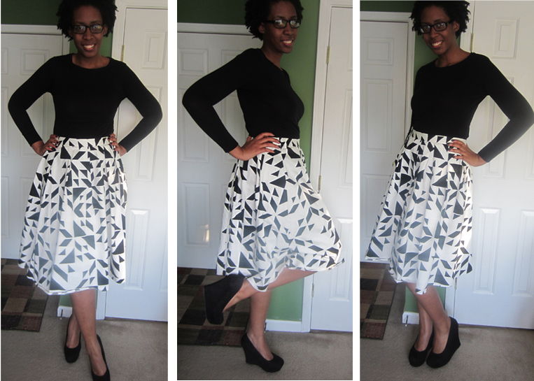 I fell in love with the pattern as soon as I saw it and I think I mentioned it in my last Pinterest Picks post a while back. It is like nothing in my closet. I like how it has an artistic and creative edge but still remains classy. Like me lol. The length of the skirt is perfect. Even in 5″ heels the skirt still falls past my knees.