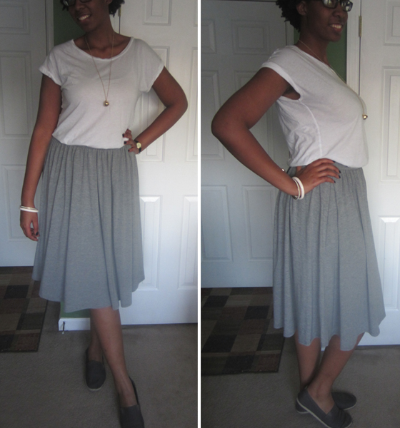 The ASOS Full Midi Skirt is a more casual skirt. The material is a soft jersey and it has an elastic waist. OMG! Elastic waists are the epitome of comfort. I can definitely sit in this skirt all day. It is nearing sweatpant/yoga pant territory but much cuter. Like I mentioned above, this skirt is very light and airy. So much so that you have to be careful on windy days. You don’t want to offer any passersby a free show if you catch my drift. Perfect for when the weather is warm, though. This is another past-knee length skirt. It comes in 3 other colors including green and white and goes up to a size 14.