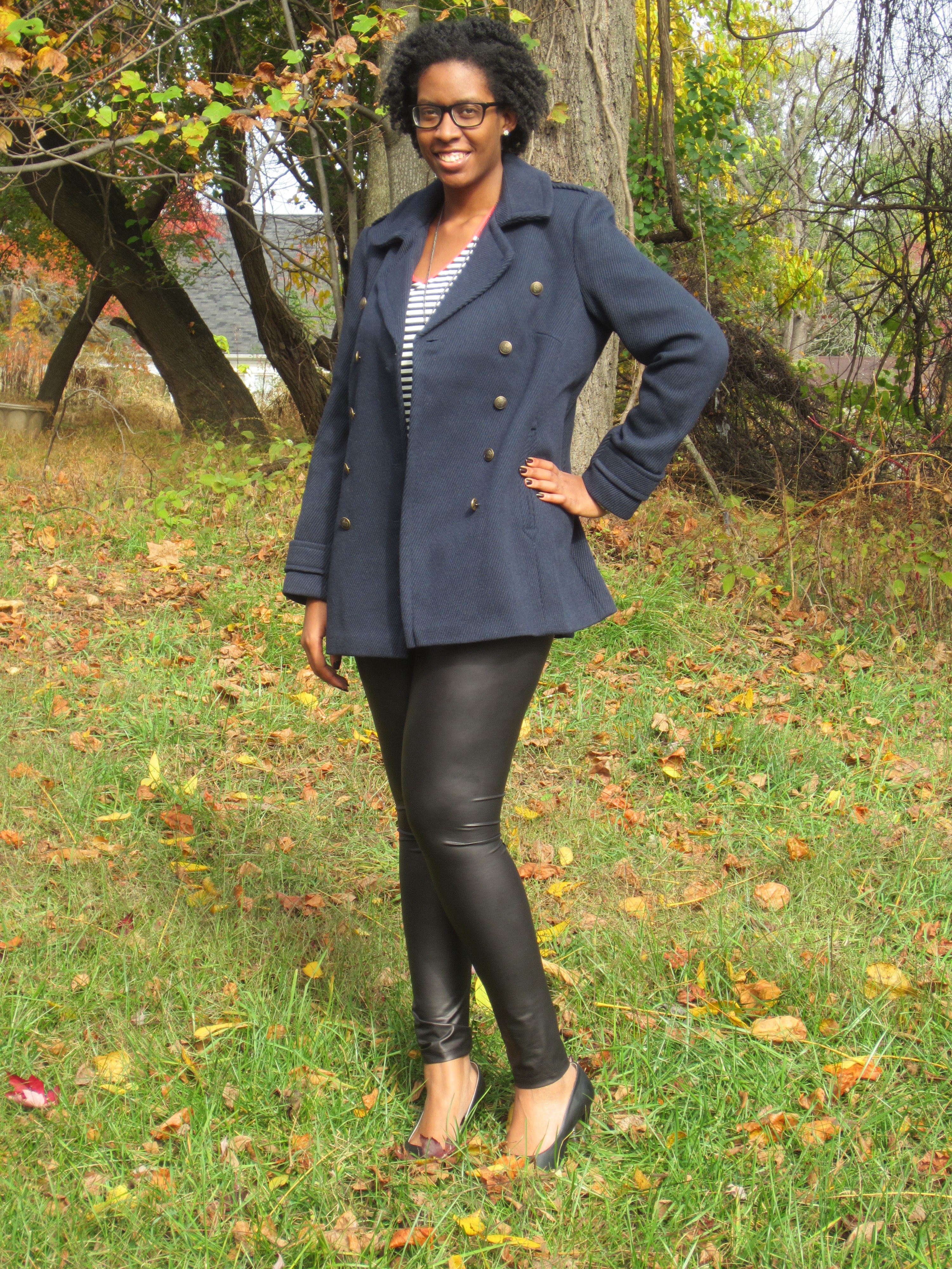 I got the Leather Look Legging in a size M and the Calvary Twill Pea Coat in the color Navy and a size 14.